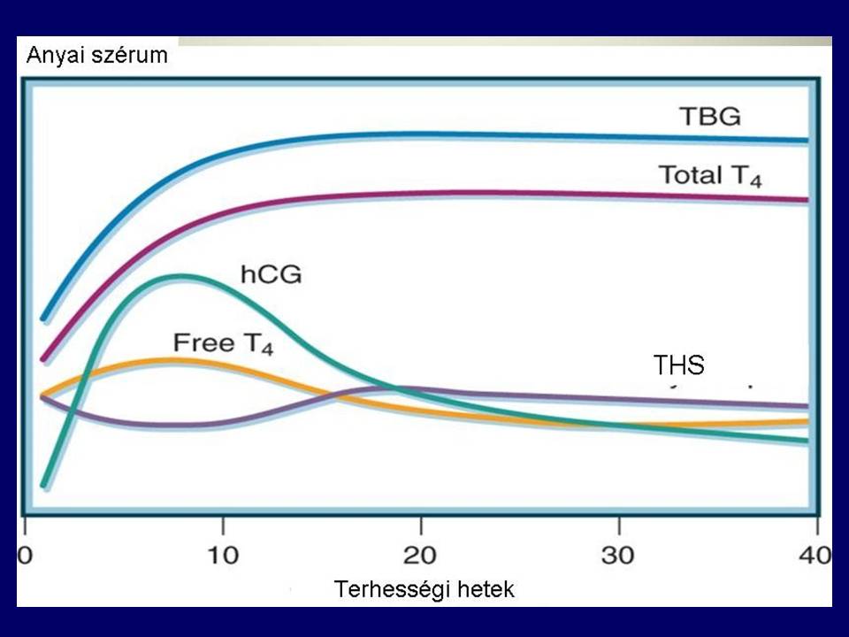 • A TSH-szint csökken az első trimeszterben mely a hCG-szint emelkedésével függ össze.