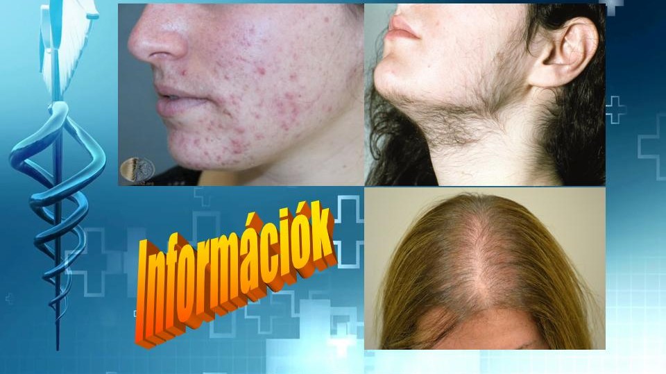 - külső tünetek (akné, szőrösödés, zsíros bőr, hajhullás),